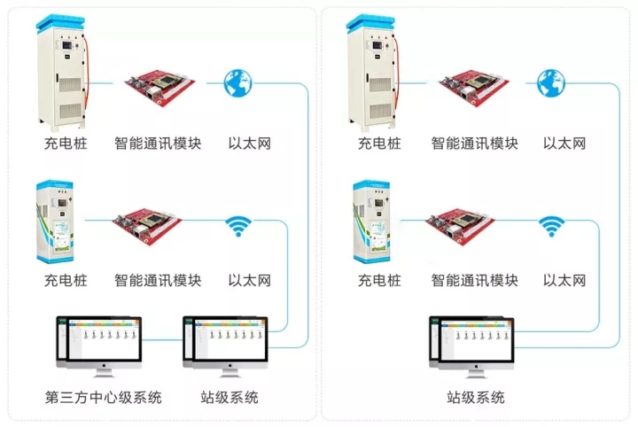 5、靈活的通訊方式:采用以太網(wǎng)、GPRS, RS485, CAN等通訊接口,可以進(jìn)行充電樁集中管理,支持本士斷口遠(yuǎn)程升級(jí)