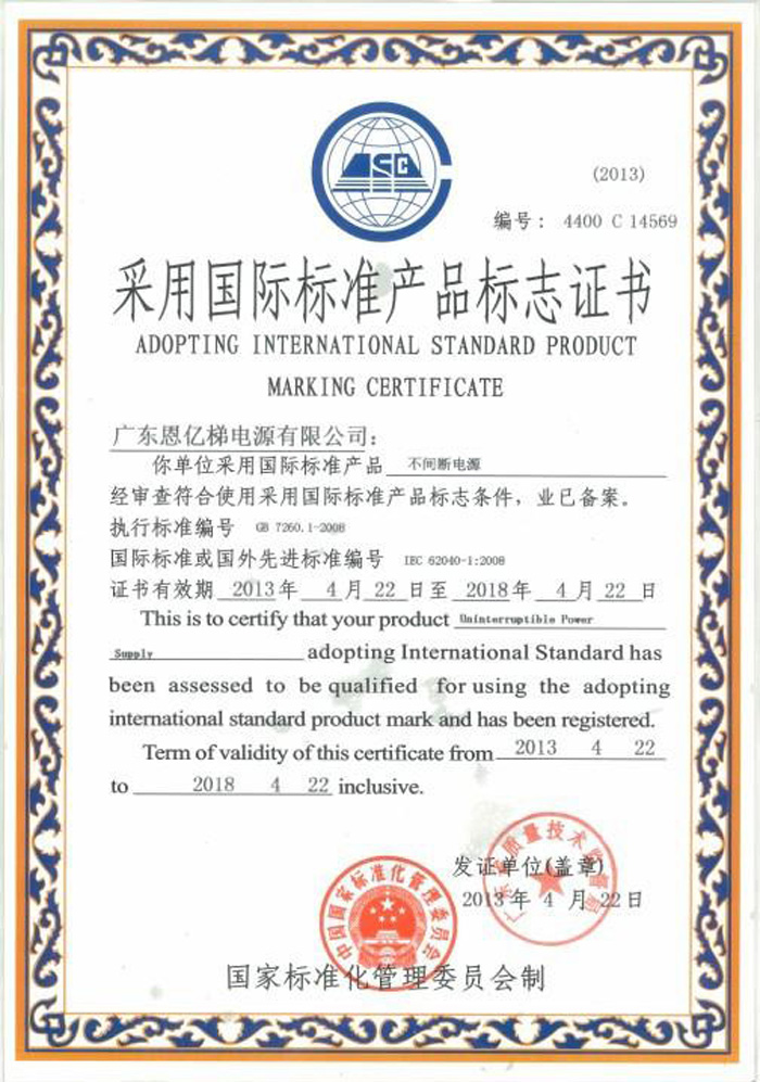 采用國際標準產(chǎn)品標志證書